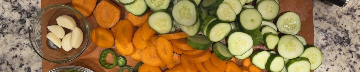 This is a really easy and a great way to try lacto-fermentation. What you need:-Pickling cucumbers (6)-Carrots (3)-Jalapeno peppers (2, ribs & seeds removed unless you want more heat)-Garlic, fresh dill & peppercorns-50 grams of salt by weight and 1 liter of cool water to produce a 5% brine. The type of salt is not … Continue reading Fermented garlic dill jalapeno pickles